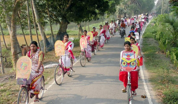 রোববার (১৪ এপ্রিল) সকালে গুয়াখোলা মাধ্যমিক বিদ্যালয় মাঠ থেকে তিন শতাধিক শিক্ষার্থীরা নববর্ষের পোশাকে সজ্জিত হয়ে সাইকেল র্যালি বের করে। কৃষক, শ্রমিক, বাউলসহ নানা সাজে সজ্জিত ও আল্পনা এঁকে শিক্ষার্থীরা সাইকেল র্যালিতে অংশ নেয়। এসময় শিক্ষার্থীদের হাতে ছিলো বর্ষবরণের প্ল্যাকার্ড ও ফেস্টুন।